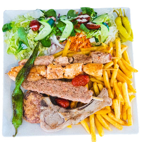 Rundsbrochette, Kipbrochette, lamskotelet, köfte en adana